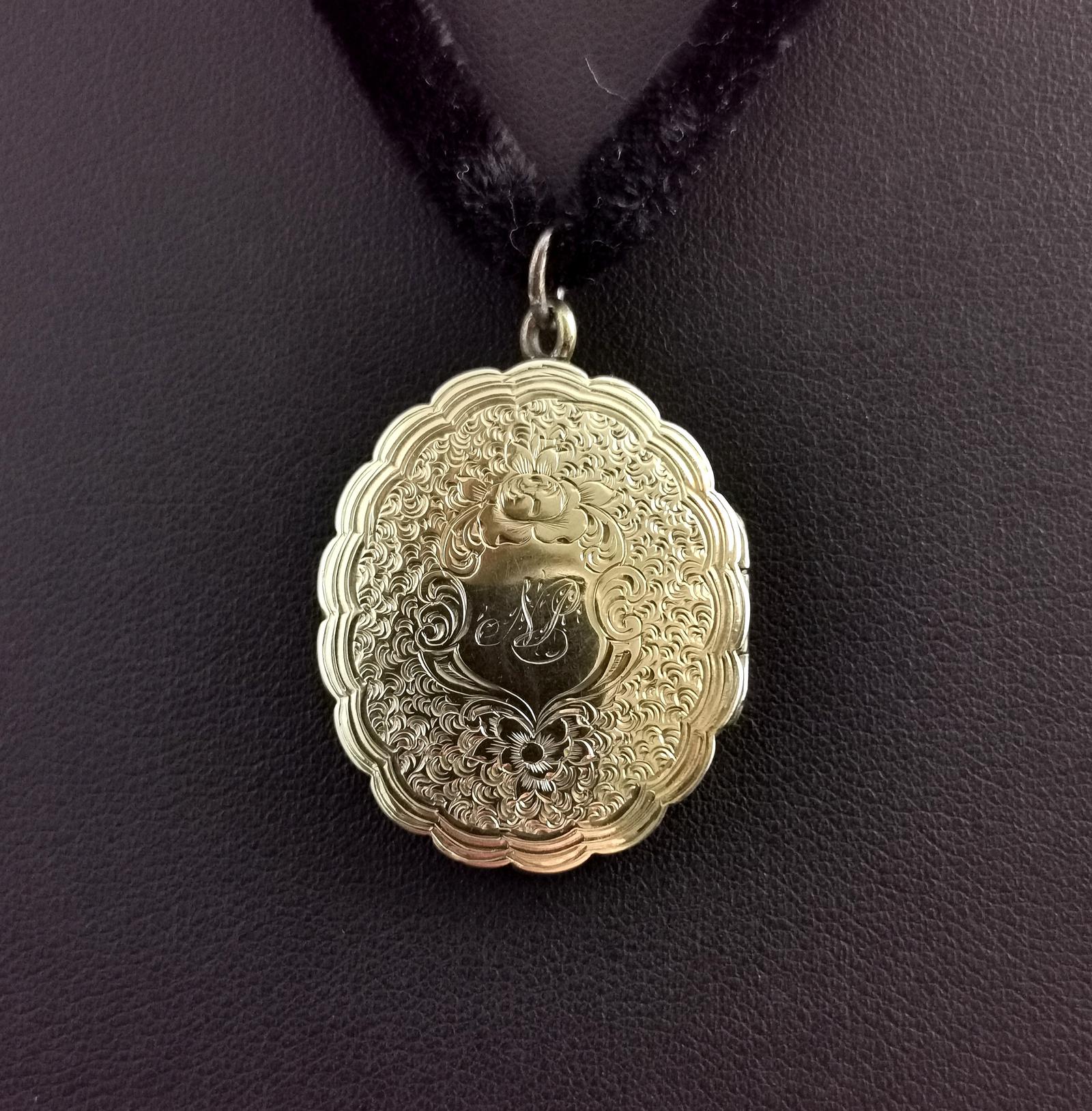 Antique Victorian 9ct Gold Locket Pendant, Velvet Choker Necklace