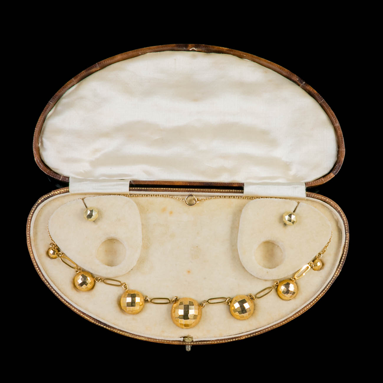 Antique Victorian 9ct Gold Necklace & Stud Earring Set c.1900