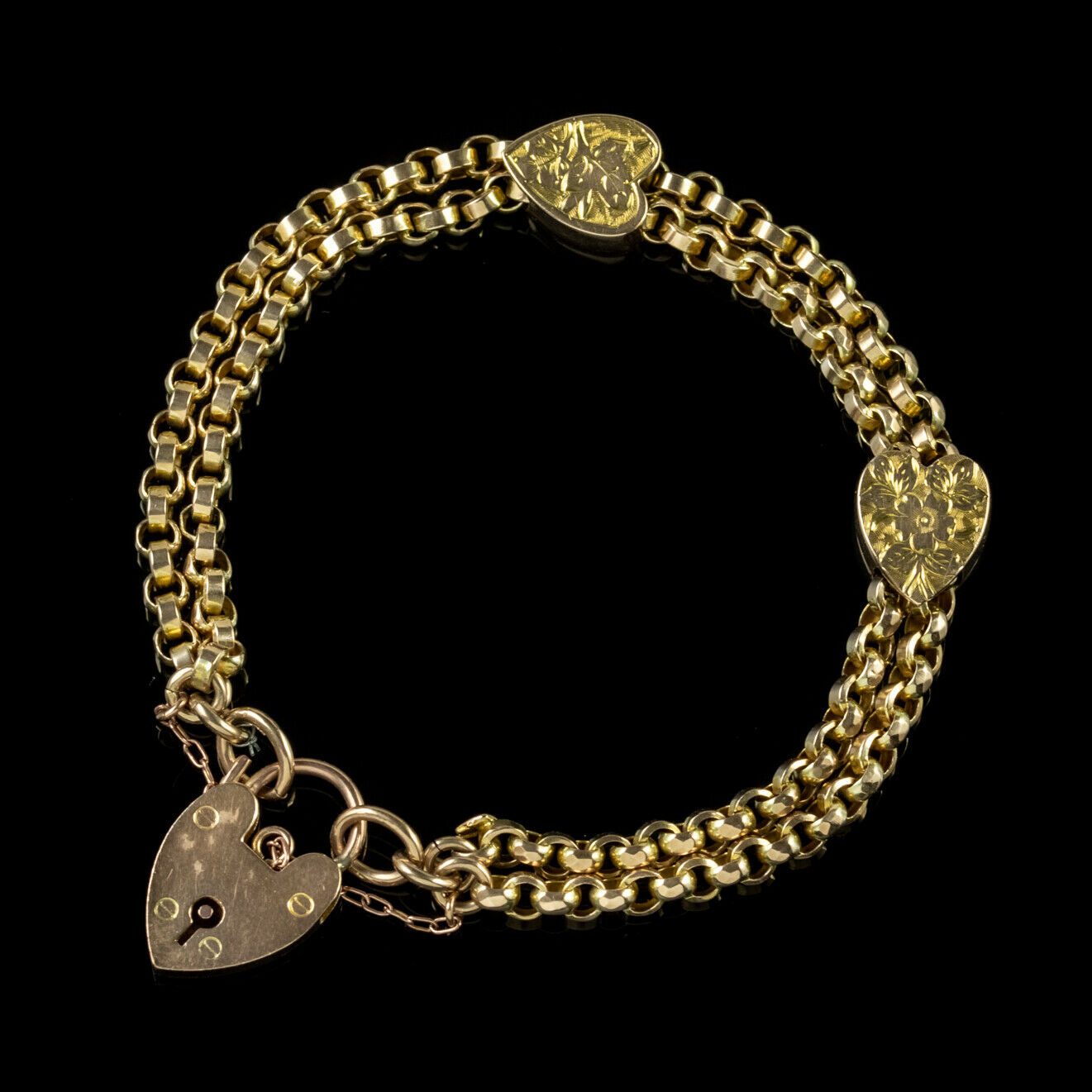 Antique Victorian 9ct Gold Slider Heart Bracelet c.1900