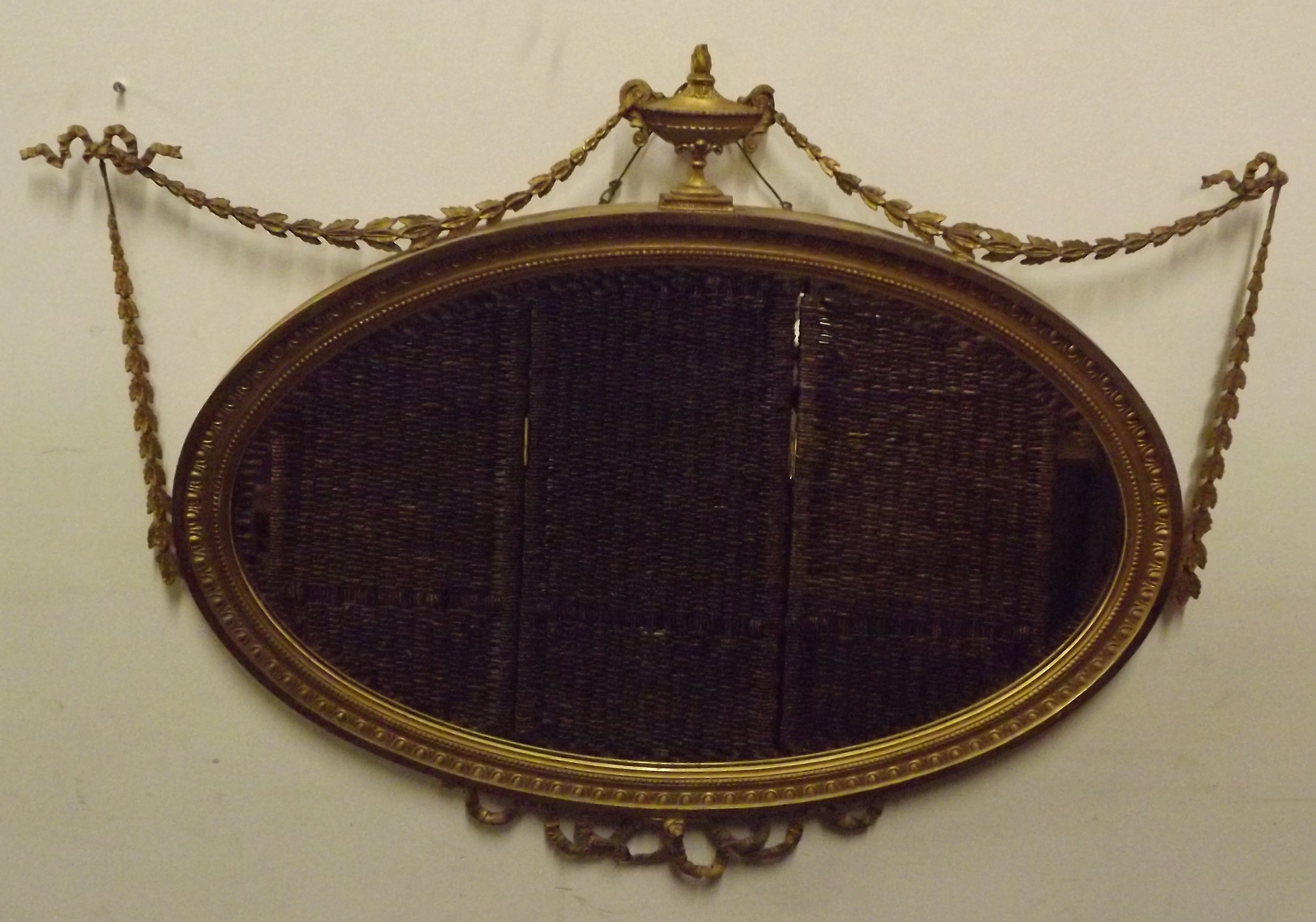 Antique Victorian Adams Style Oval Gilt-Framed Mirror