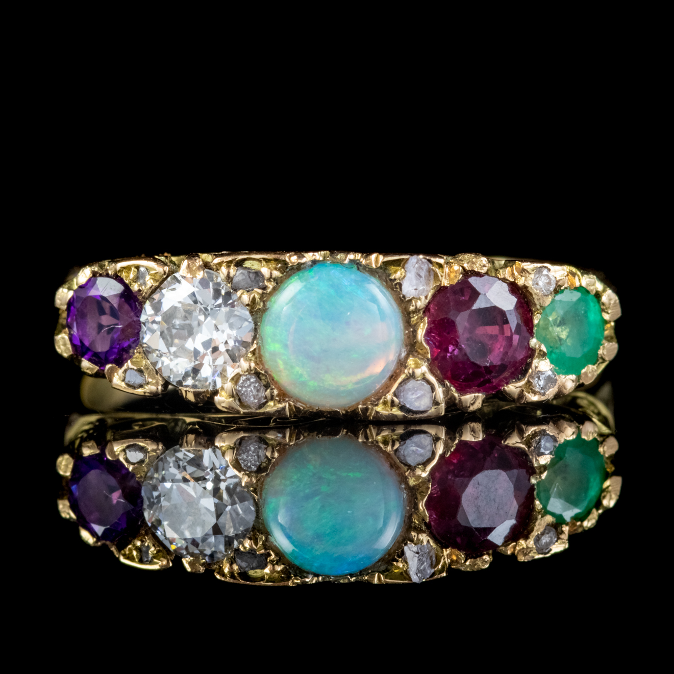 Antique Victorian Adore Gemstone Ring 18ct Gold c.1890