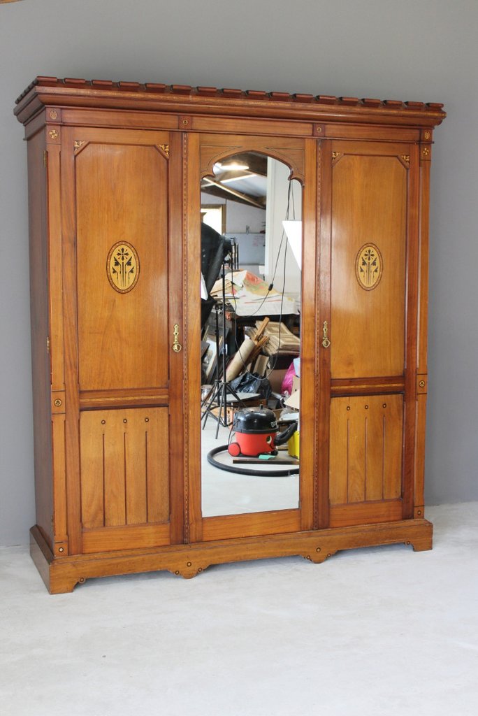 Antique Victorian Aesthetic Movement Triple Wardrobe