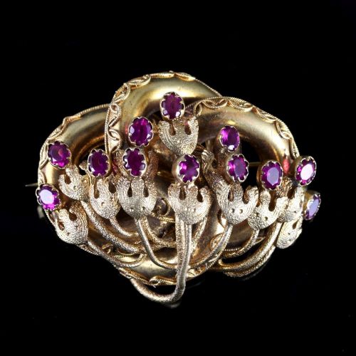 Antique Victorian Almandine Garnet Floral Brooch 18ct c.1900