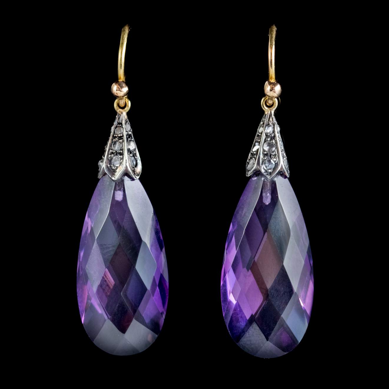 Antique Victorian Amethyst Diamond Drop Earrings Silver 18ct Gold c.1900