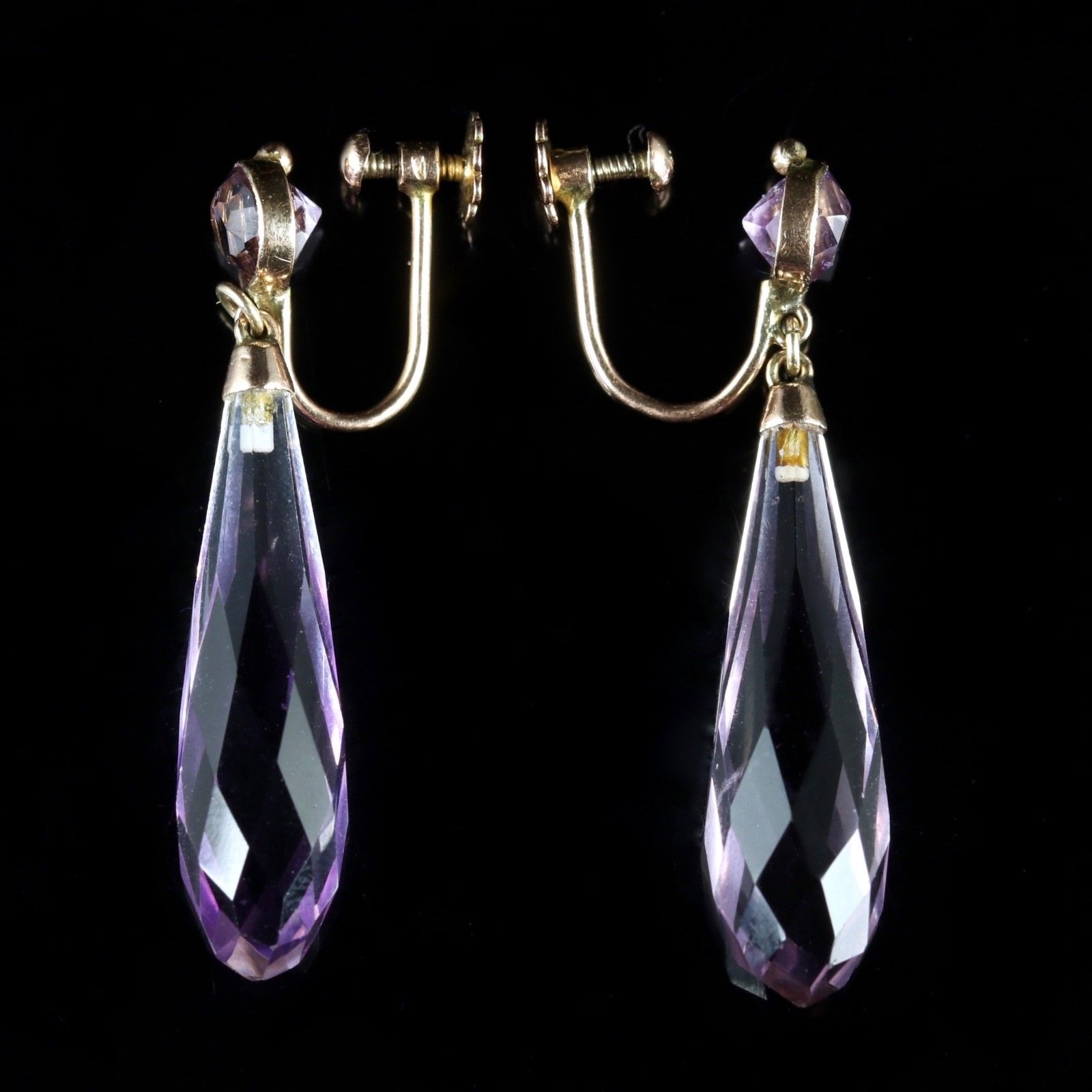 Antique Victorian Amethyst Earrings 9ct Gold Screw Back c.1900