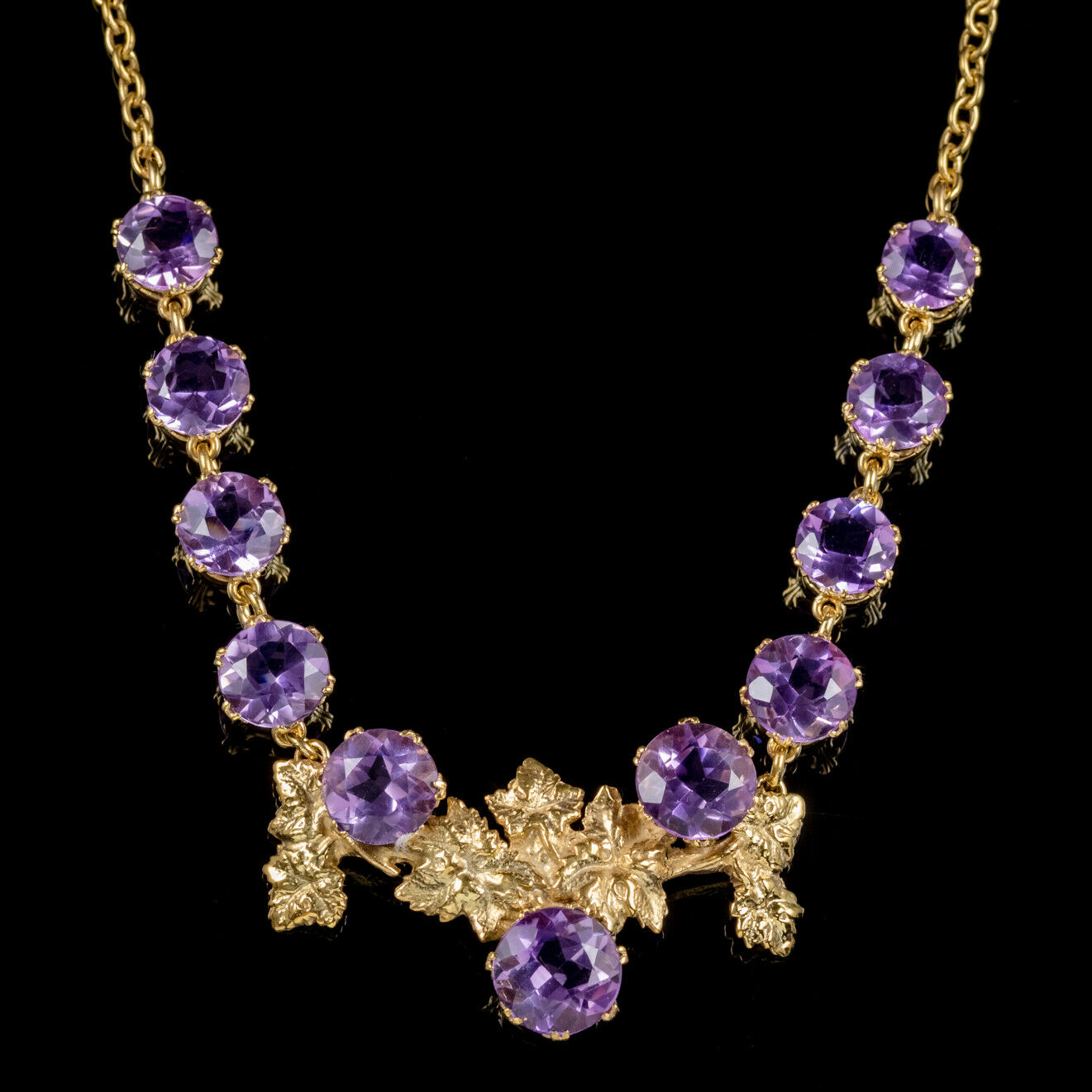 Antique Victorian Amethyst Grape Vine Necklace 18ct Gold on Silver c.1900