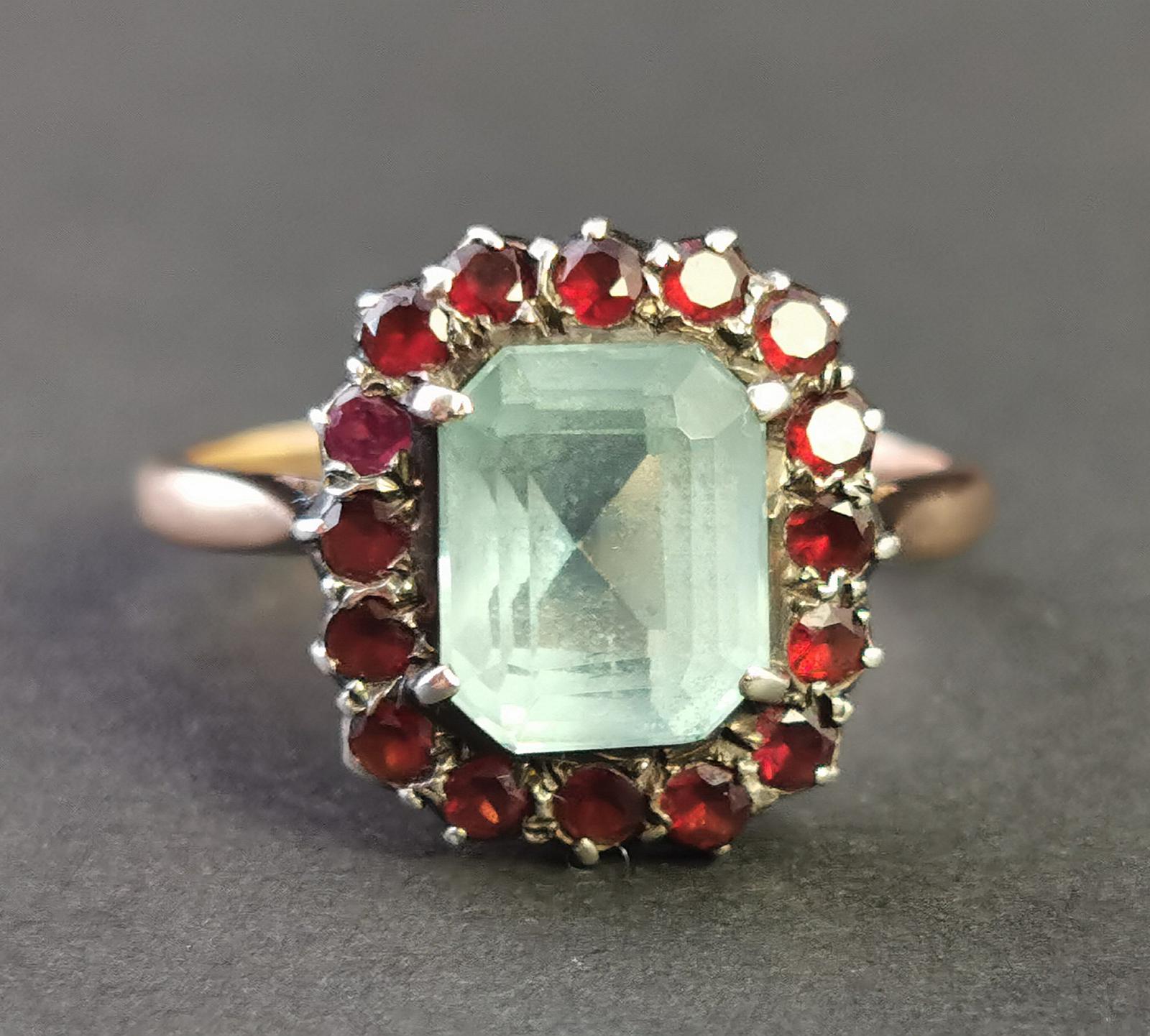 Antique Victorian Aquamarine & Garnet Ring, 9ct Gold