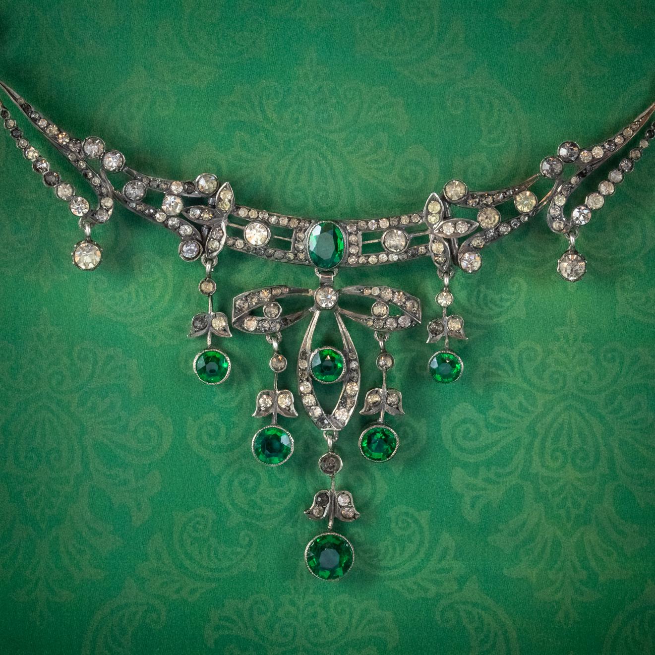 Antique Victorian Art Nouveau Green Paste Garland Necklace Silver c.1900