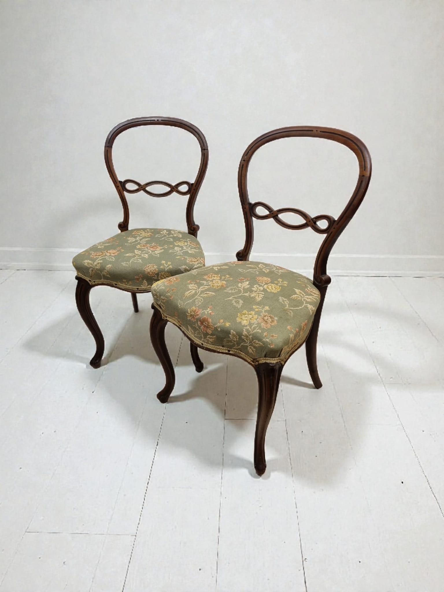A charming pair of late 19th Century Victorian balloon-back chairs with elegant carved backs and cabriole front legs.