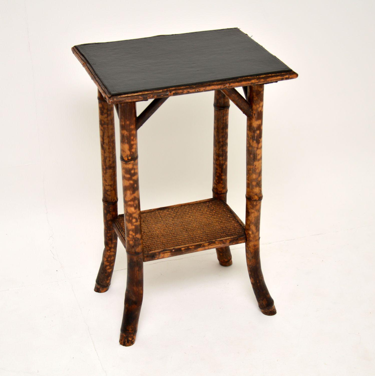 Antique Victorian Bamboo Leather  Top Side Table (1 of 6)