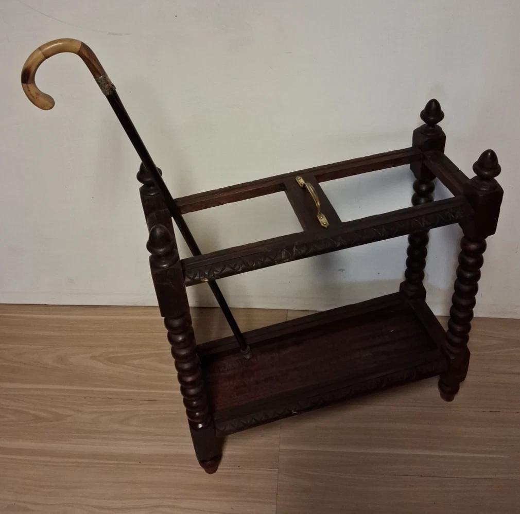 This Antique Victorian Barley Twist Stick and Umbrella Stand Holder is a stylish and practical piece of furniture, originating from the United Kingdom. With intricate acorn tops and a Victorian style design, this stand holder adds a touch of elegance to any hallway or entrance. Standing at a height of 69cm and with a base width of 61cm, it provides ample space for storing sticks and umbrellas while also adding a vintage charm to your home decor. Perfect for those looking to add a touch of history and sophistication to their living spac