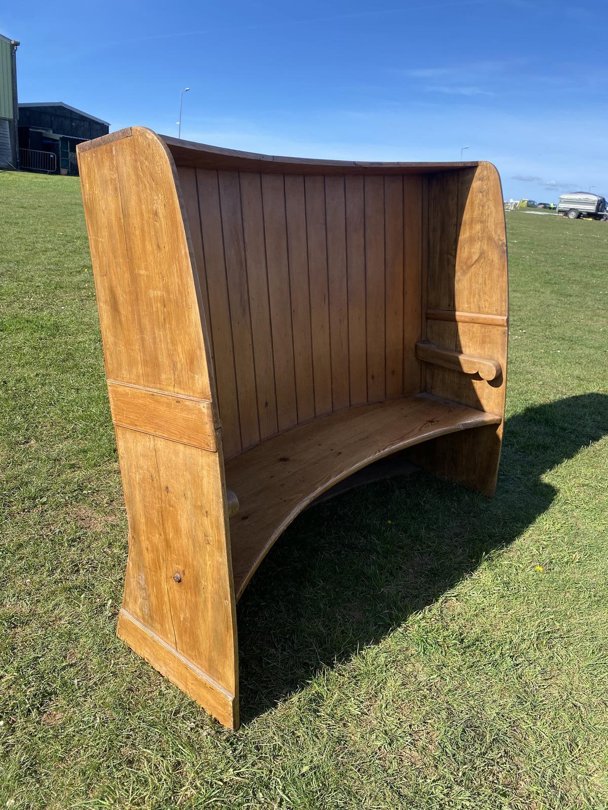 Antique Victorian Barrel Bowed Pine Settle Curved
