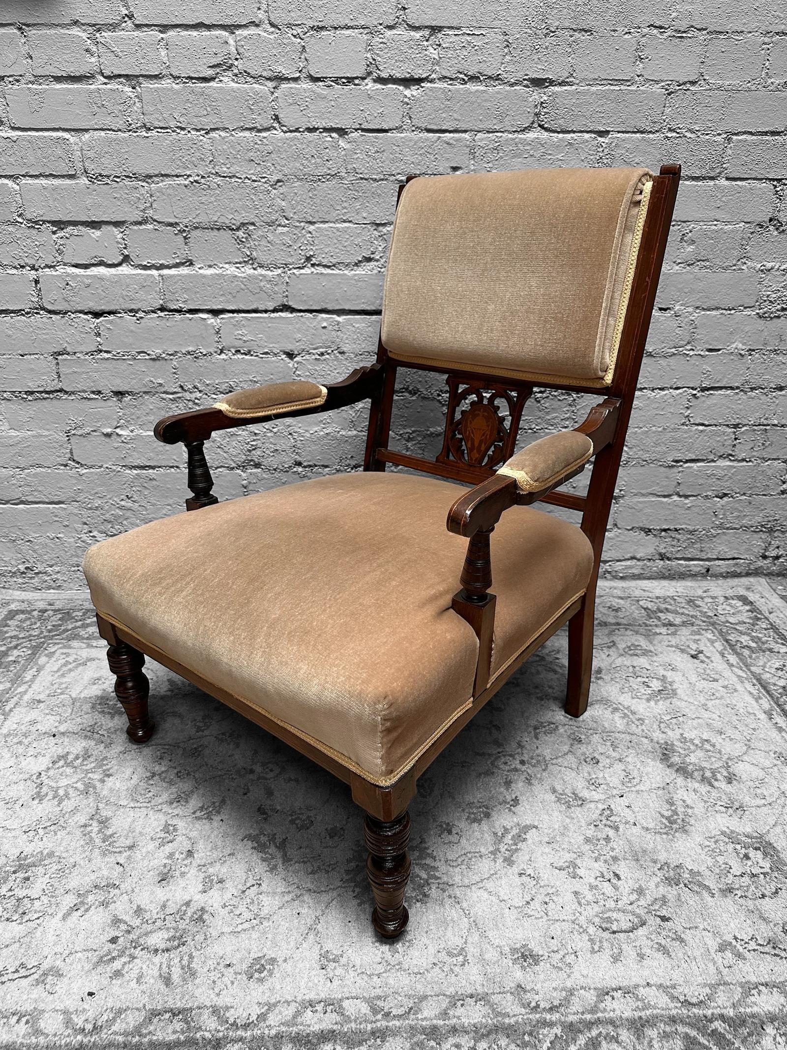 Antique Victorian Bedroom Armchair / Mahogany Frame / 19th Century