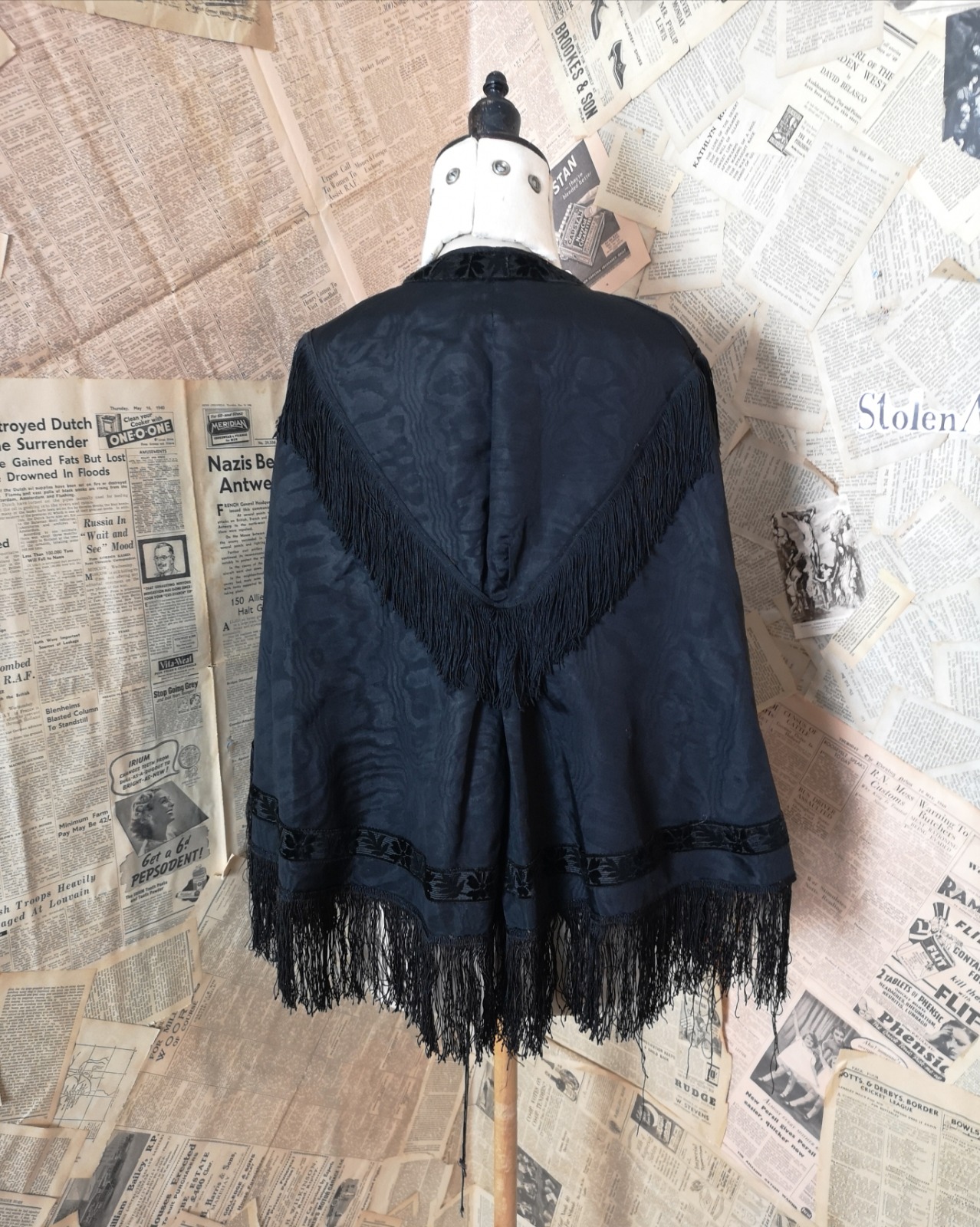 Antique Victorian Black Moire Mourning Cape