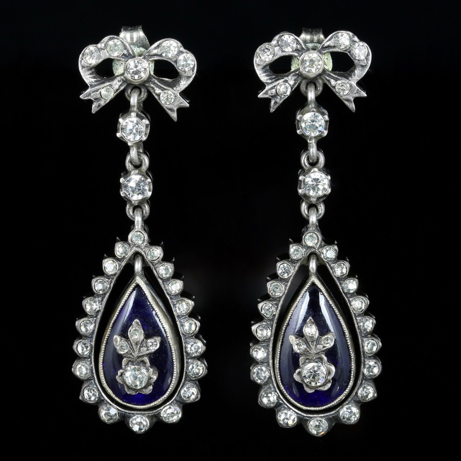 Antique Victorian Blue Enamel Paste Earrings c.1890