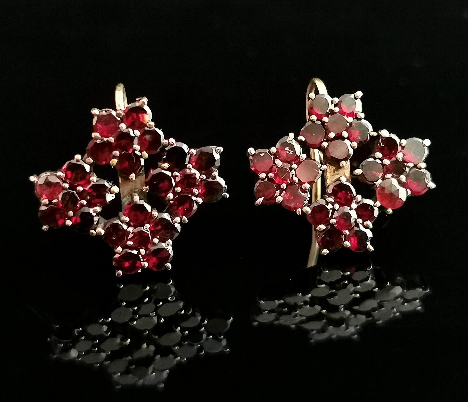 Antique Victorian Bohemian Garnet Flower Earrings, 9ct Gold