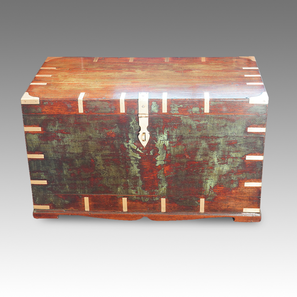 Antique Victorian Brass Bound Military Chest with Some Original Paint