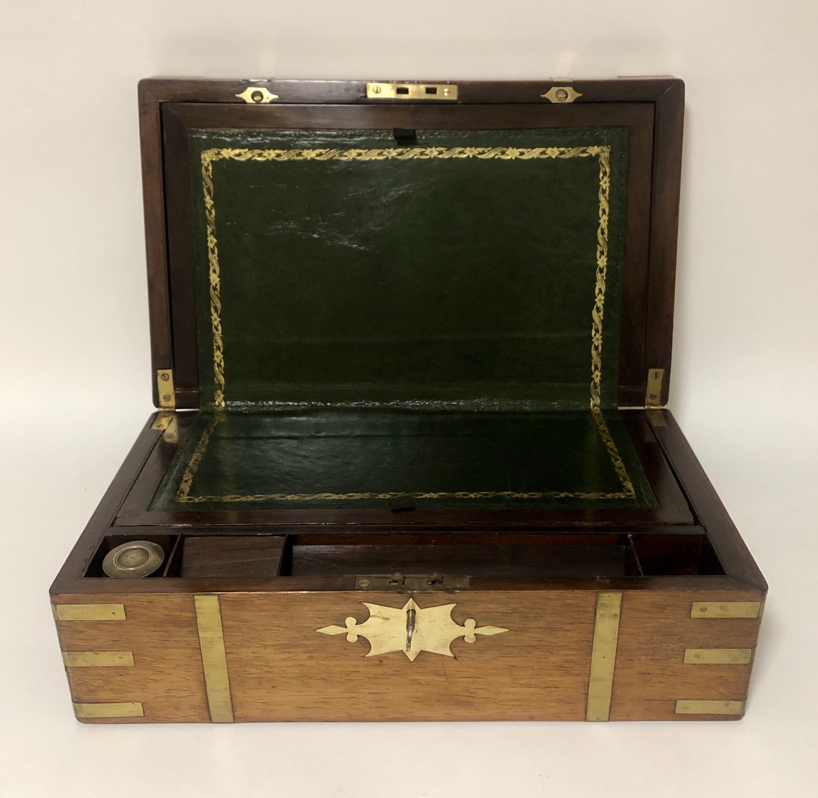 Antique Victorian Brass Bound Writing Slope Box with Secret Drawers