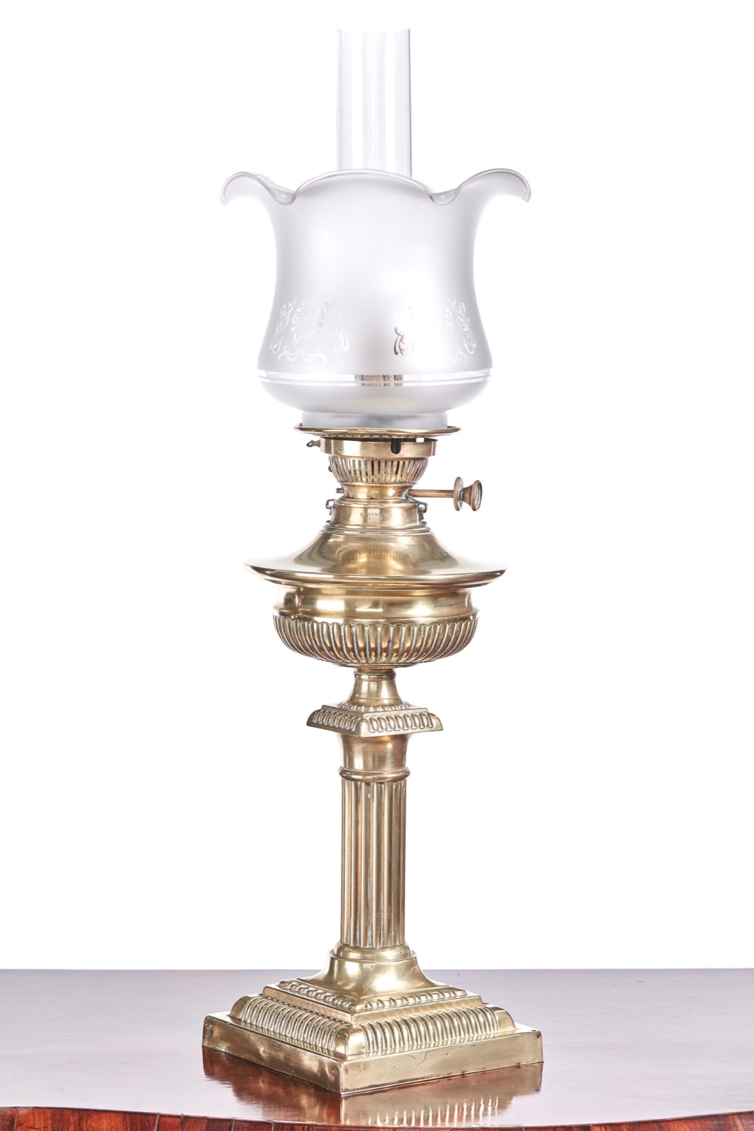 Antique Victorian Brass Corinthian Column Oil Lamp