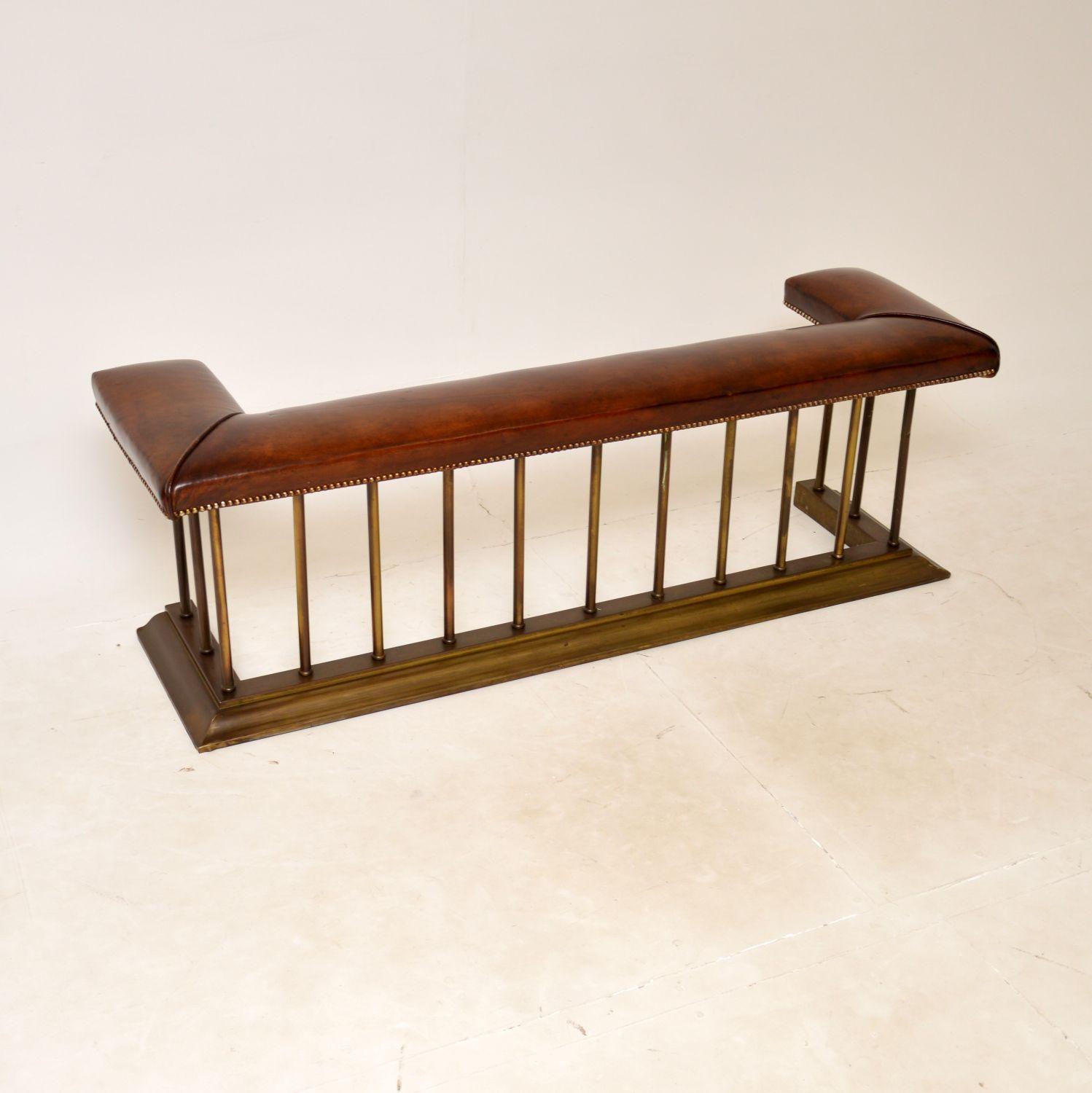 Antique Victorian Brass & Leather Fireplace Club Fender
