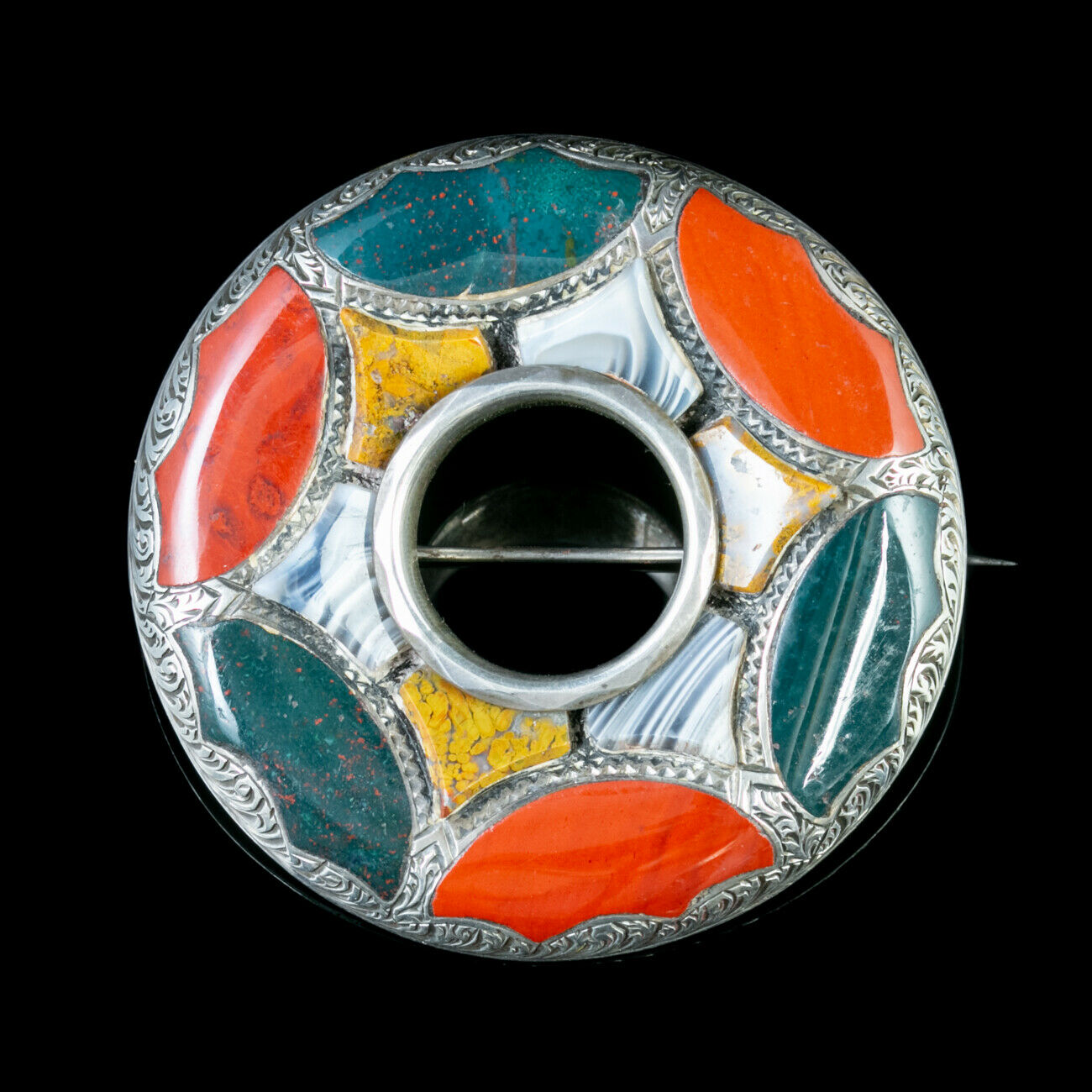 Antique Victorian Brooch Sterling Silver Scottish Agate c.1860