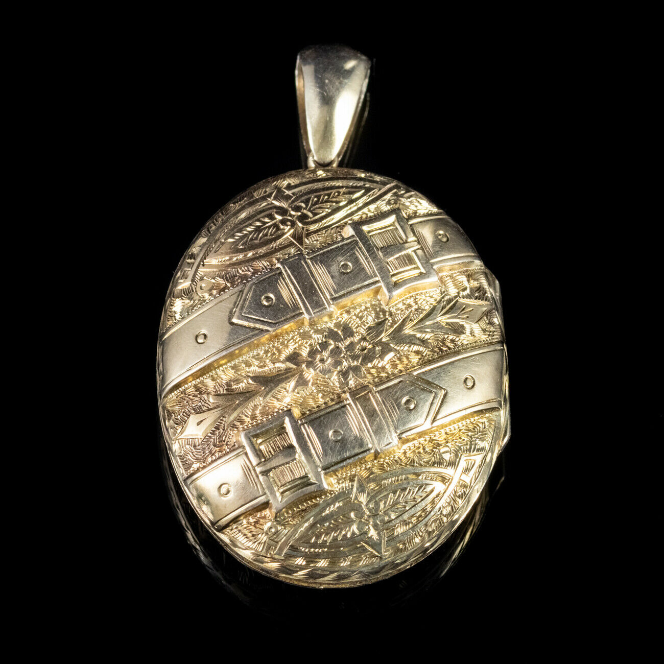 Antique Victorian Buckle Forget Me Not Locket 9ct Gold c.1900