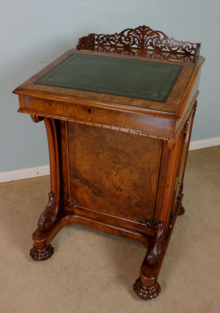 Antique Victorian Burr Walnut Davenport Writing Desk
