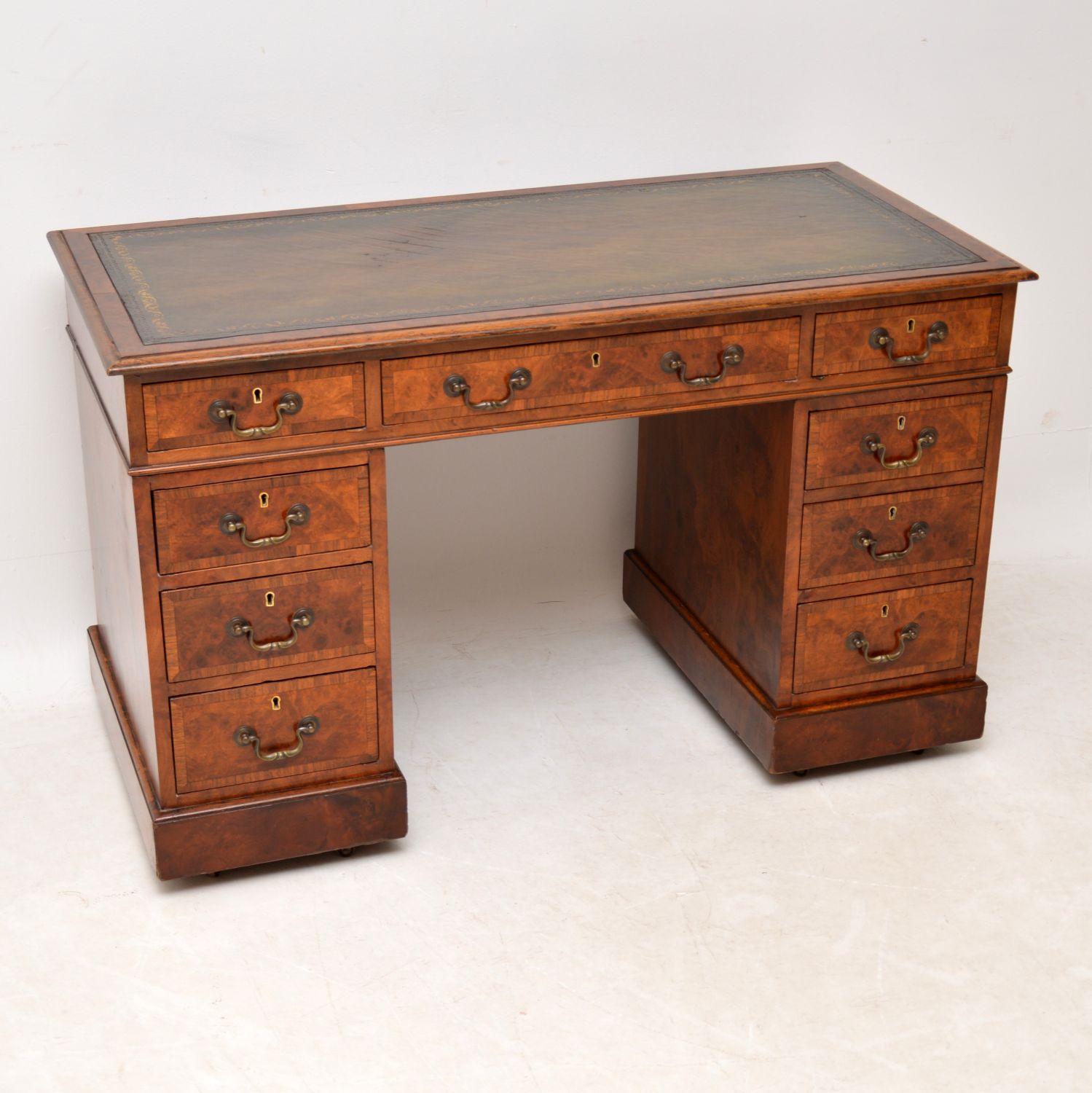 Antique Victorian Burr Walnut Leather Top Desk (1 of 1)