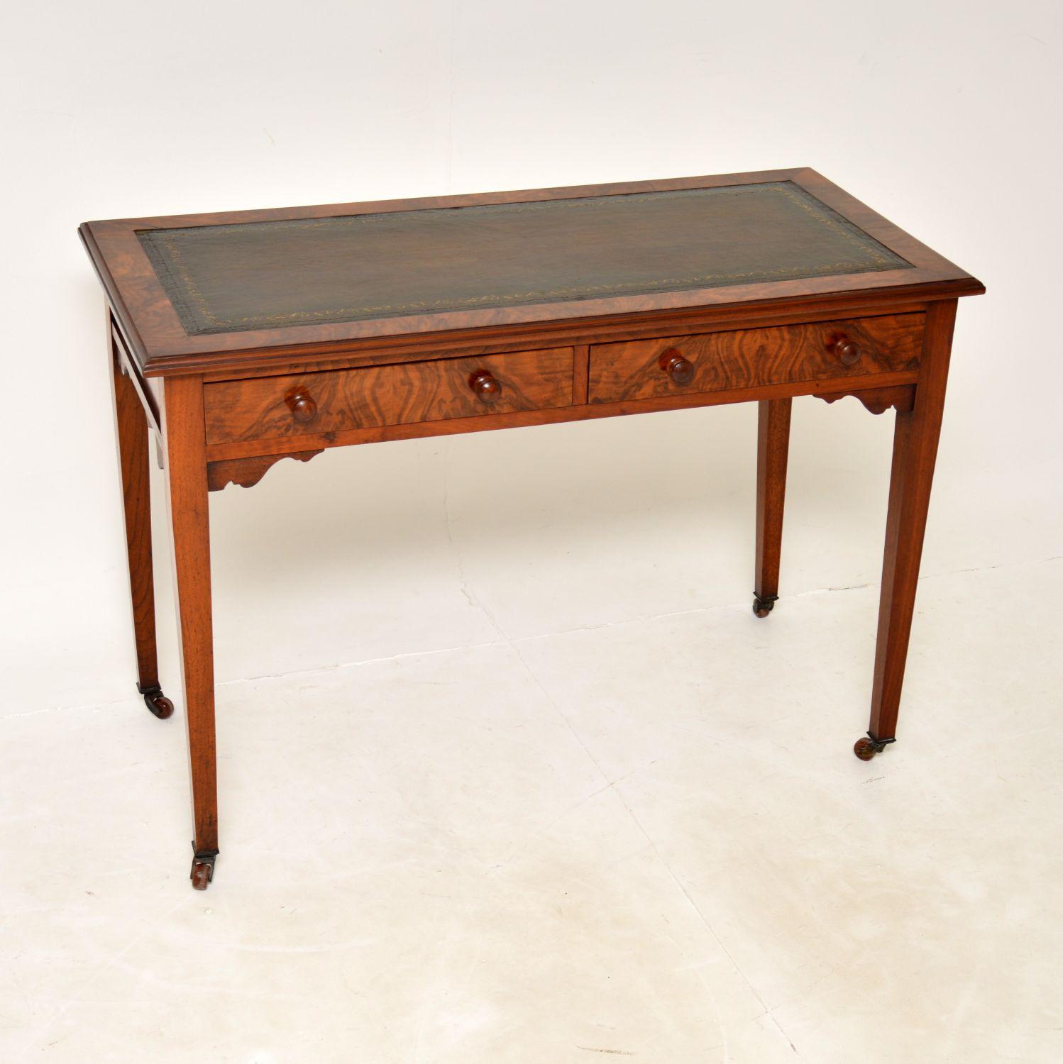 Antique Victorian Burr Walnut Leather Top Writing Table / Desk
