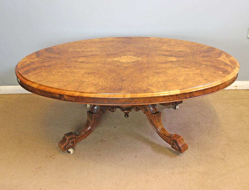 Antique Victorian Burr Walnut Oval Coffee Table