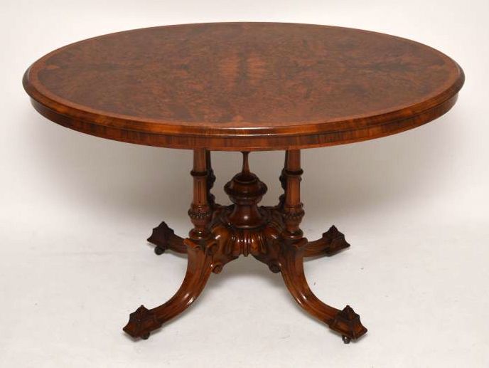 Antique Victorian Burr Walnut Oval Dining Table (1 of 1)
