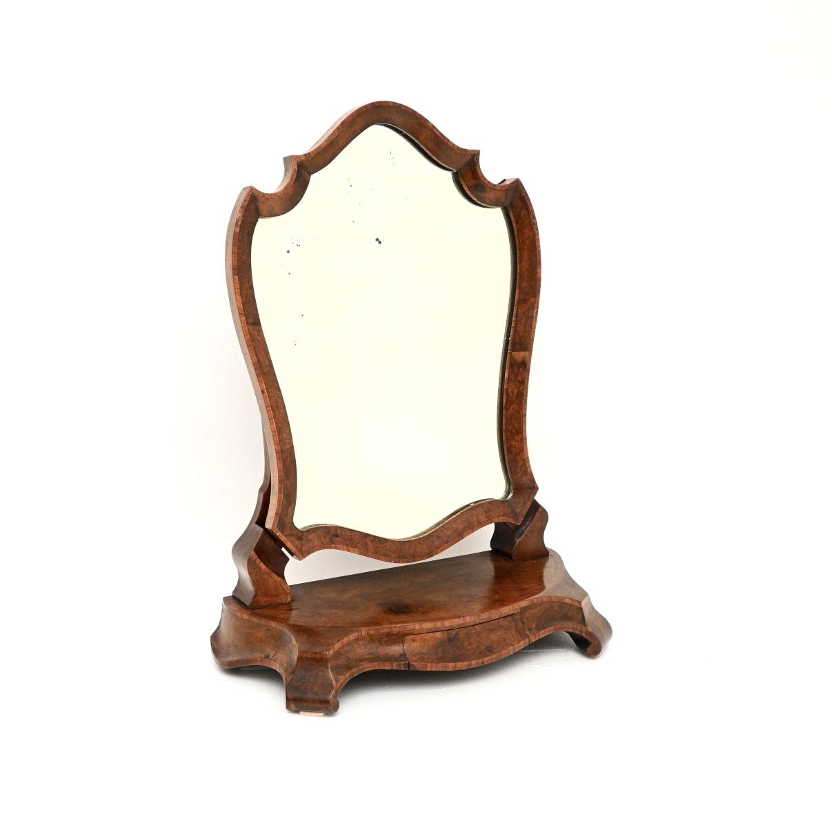 Antique Victorian Burr Walnut Vanity Mirror