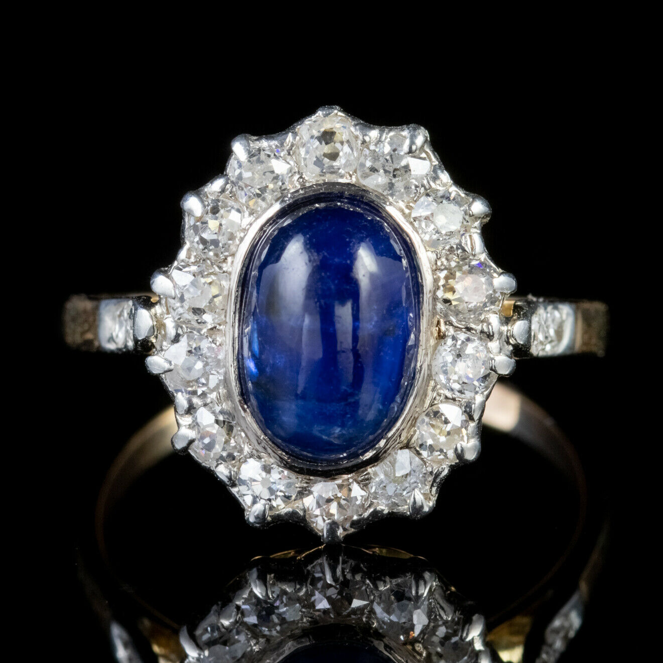 Antique Victorian Cabochon Sapphire Diamond Ring 18ct Gold c.1880