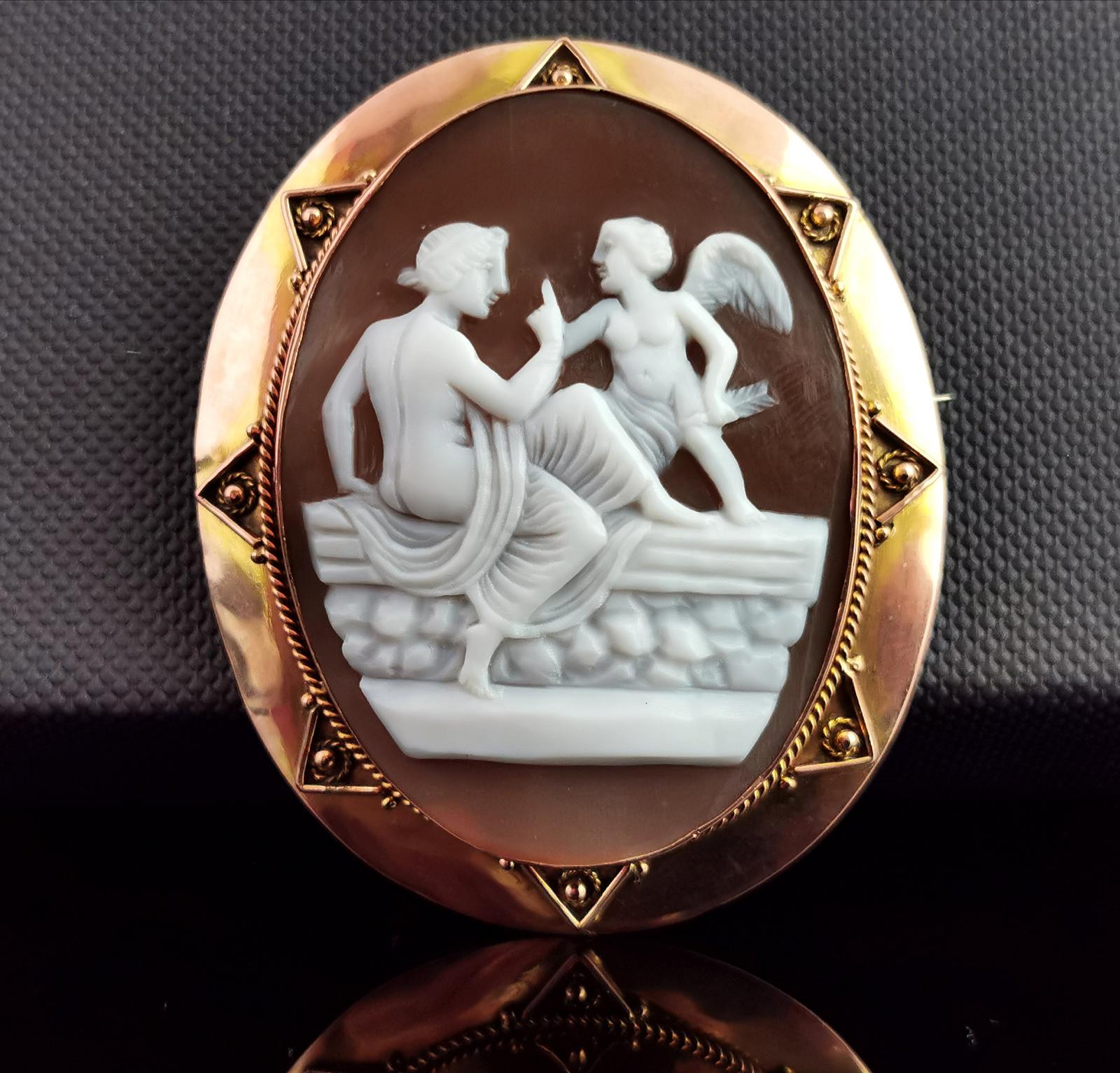 Antique Victorian Cameo Brooch, 9ct Gold, Cupid