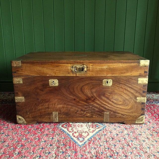 Antique Victorian Campaign Chest Old Camphor Wood Colonial Military Storage Trunk Brass Locks + Key