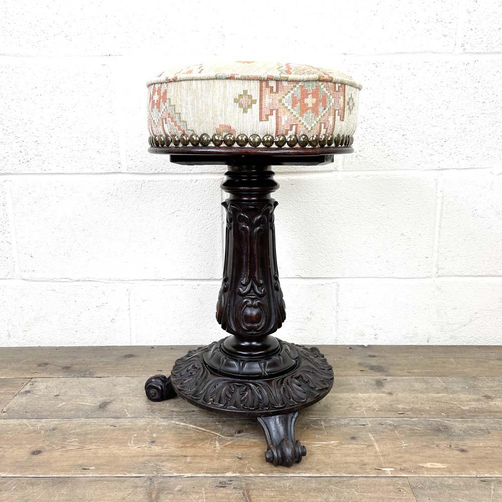 Antique Victorian Carved Mahogany Piano Stool (1 of 8)