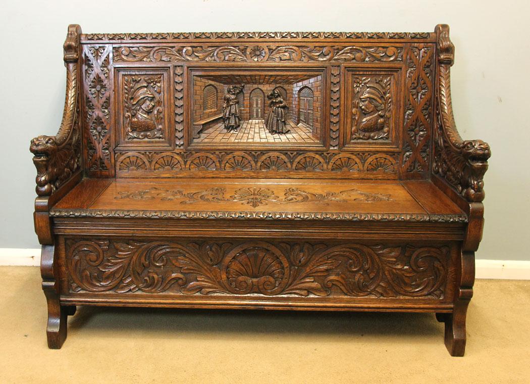 Antique Victorian Carved Oak Monks Bench Settle (1 of 17)