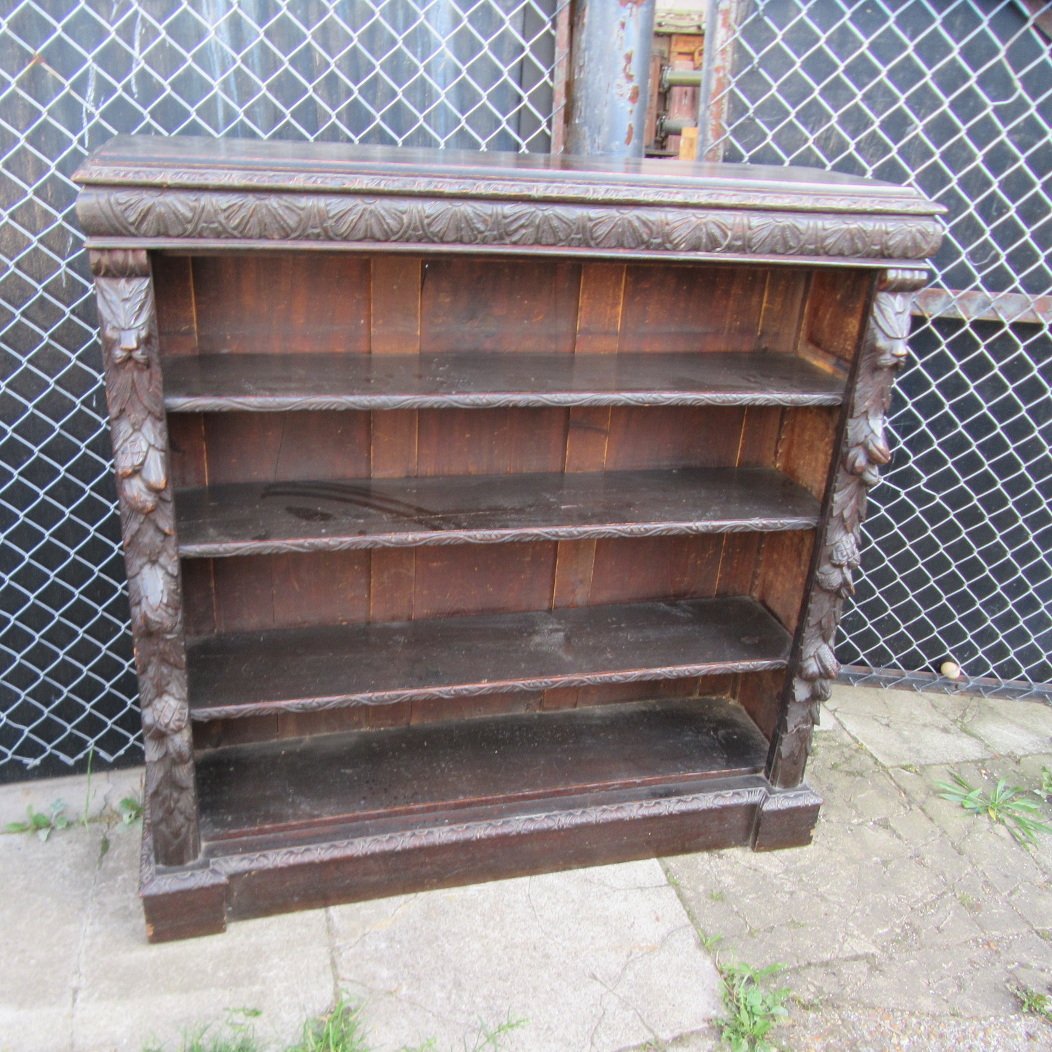Antique Victorian Carved Oak Open Bookcase c.1880