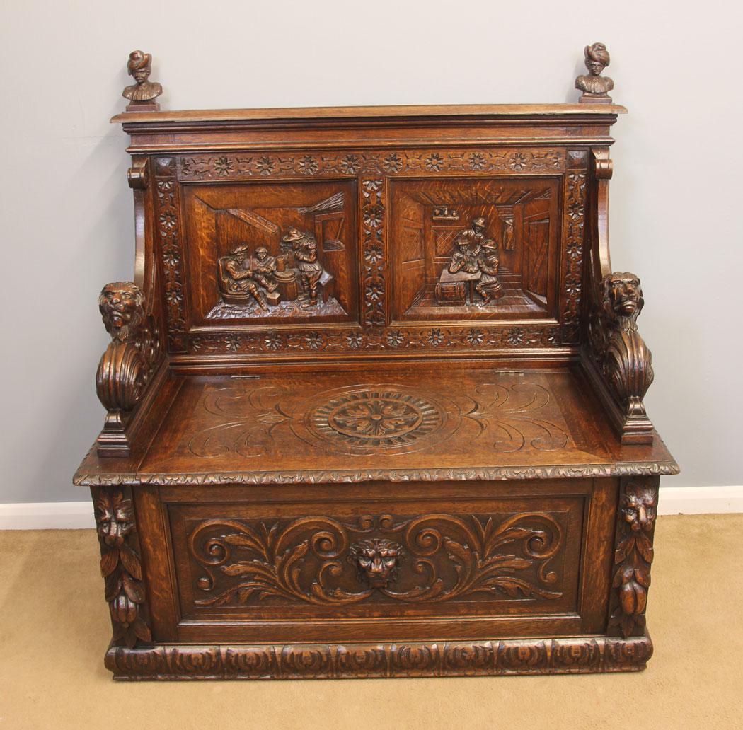 Antique Victorian Carved Oak Settle Monks Bench (1 of 15)