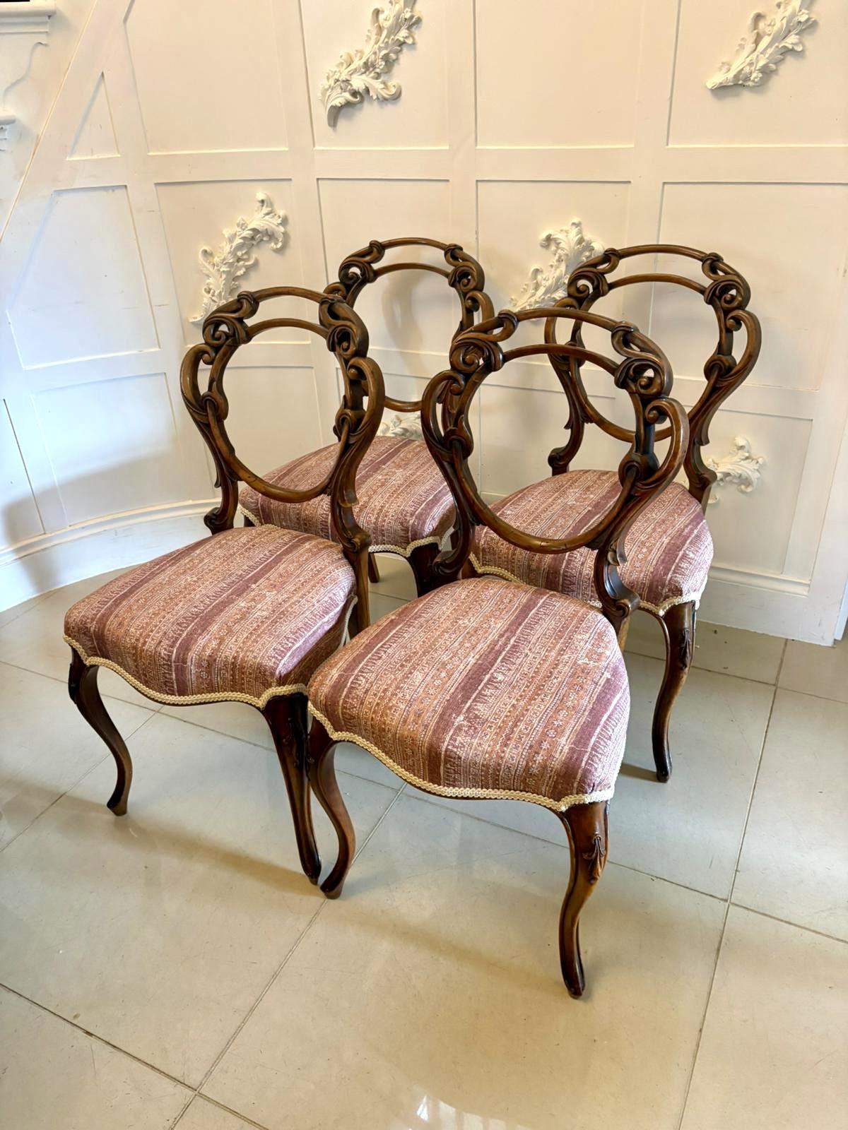 Antique Victorian Carved Walnut Balloon Back Dining Chairs Set of Four