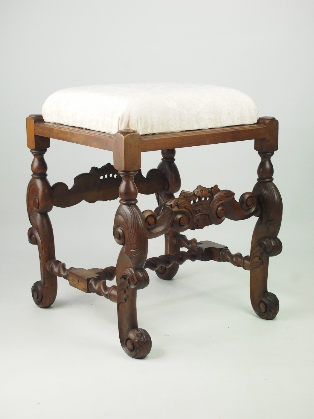 Antique Victorian Carved Walnut Stool c.1850 (1 of 1)