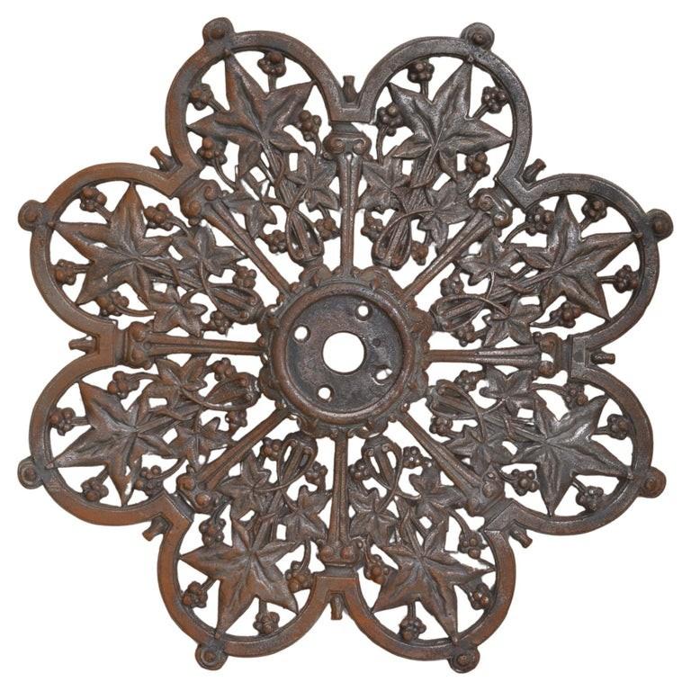 Antique Victorian Cast Iron Ceiling Rose, Ivy Leaf Design