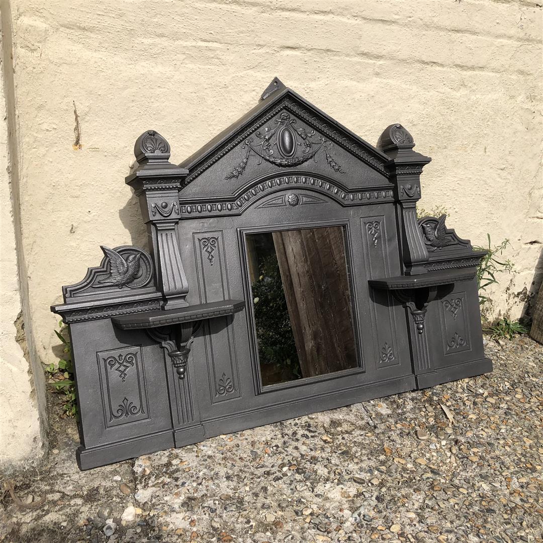 Antique Victorian Cast Iron Overmantle Mirror 1890s