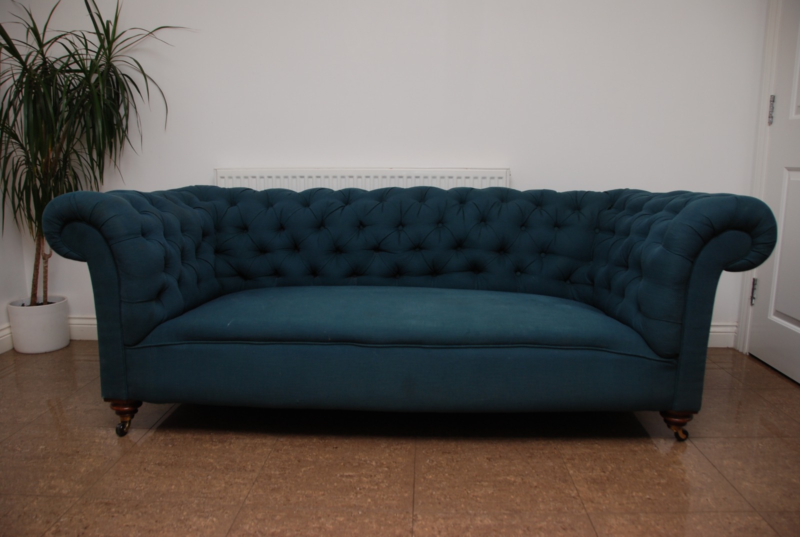 Antique Victorian Chesterfield Sofa Settee in Blue Fabric