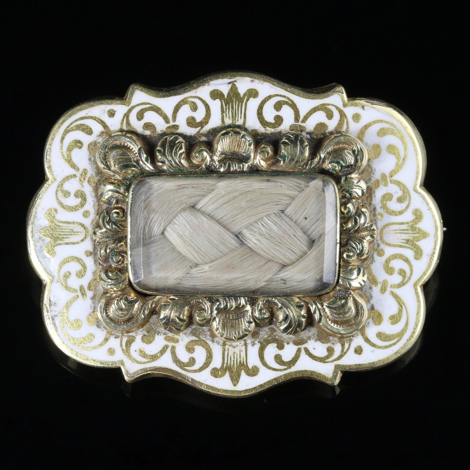 Antique Victorian Childs Memorial Brooch White Enamel c.1880