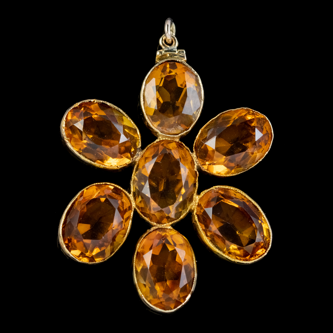 Antique Victorian Citrine Pendant 9ct Gold 23ct Citrines c.1890