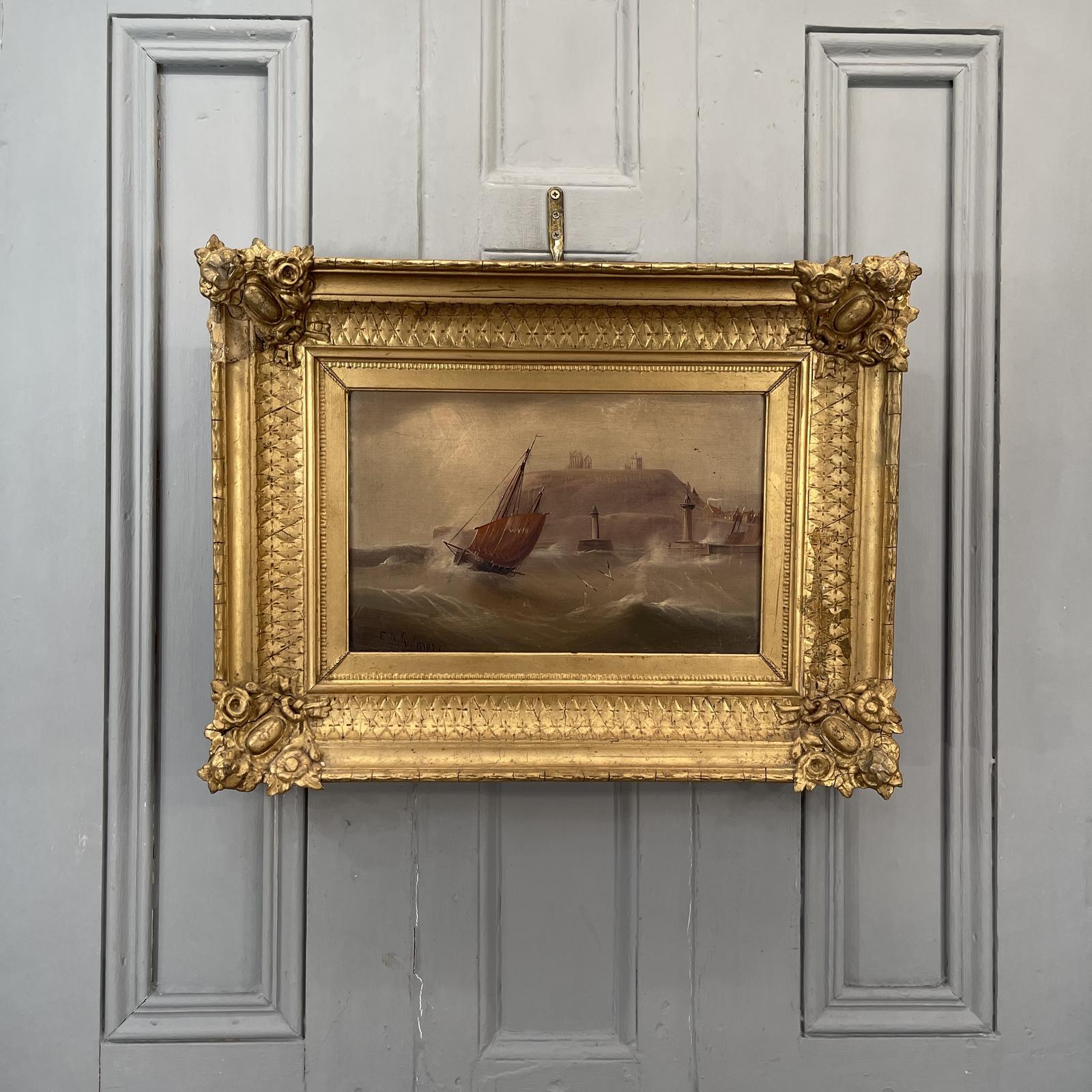 Antique Victorian Coastal Seascape of Sailing Boat in Heavy Weather Signed EK Redmore