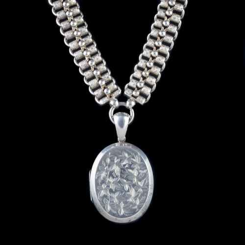 Antique Victorian Collar & Locket Sterling Silver Dated 1882