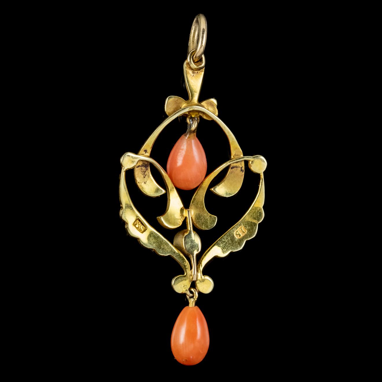 Antique Victorian Coral Pearl Pendant 15ct Gold c.1900