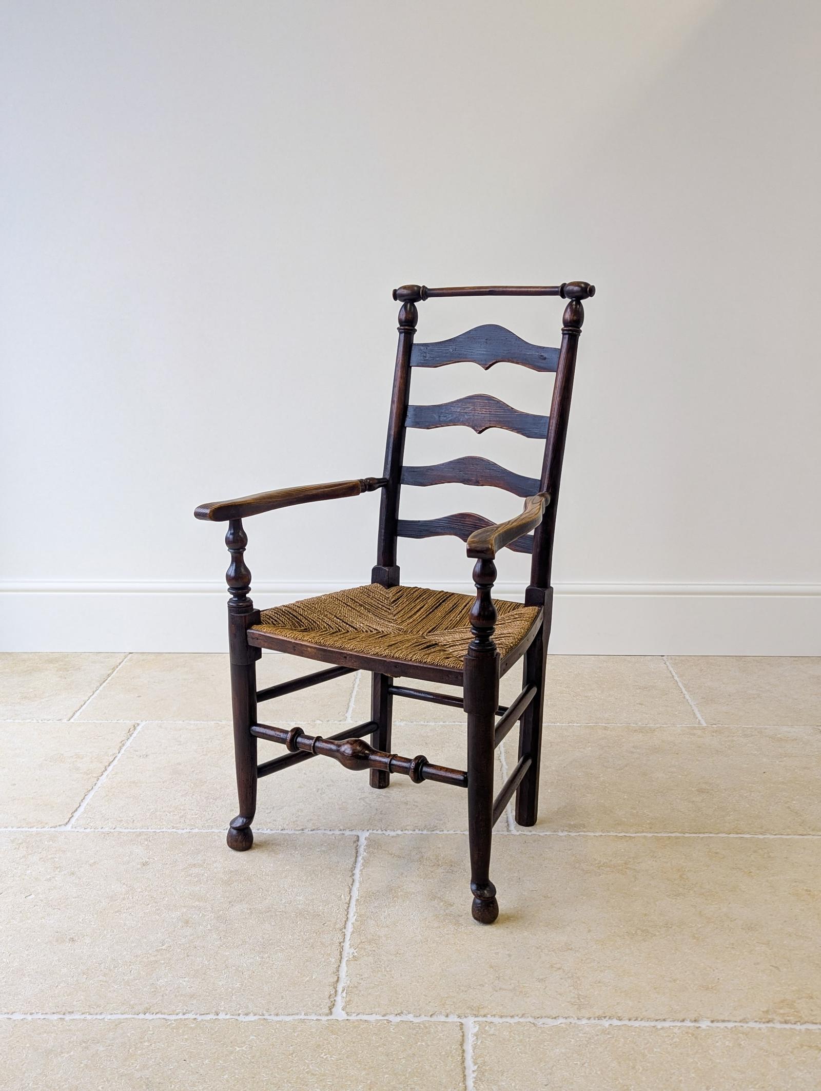 This Antique Victorian Country Ash Ladderback Armchair c.1890 is located in West Midlands, United Kingdom